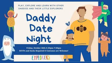 Bring on all the daddies and their little ones, on special Friday evenings from 5:30-7:00pm for a night of Open Play, Dance Party, Pizza and Juice and a whole lot of fun!