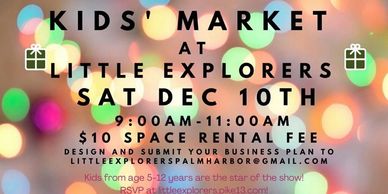 Have a big explorer who is 5-12 years old? Do they make something they want to try to sell? Our semi-annual Kids Market event is the best place for it!